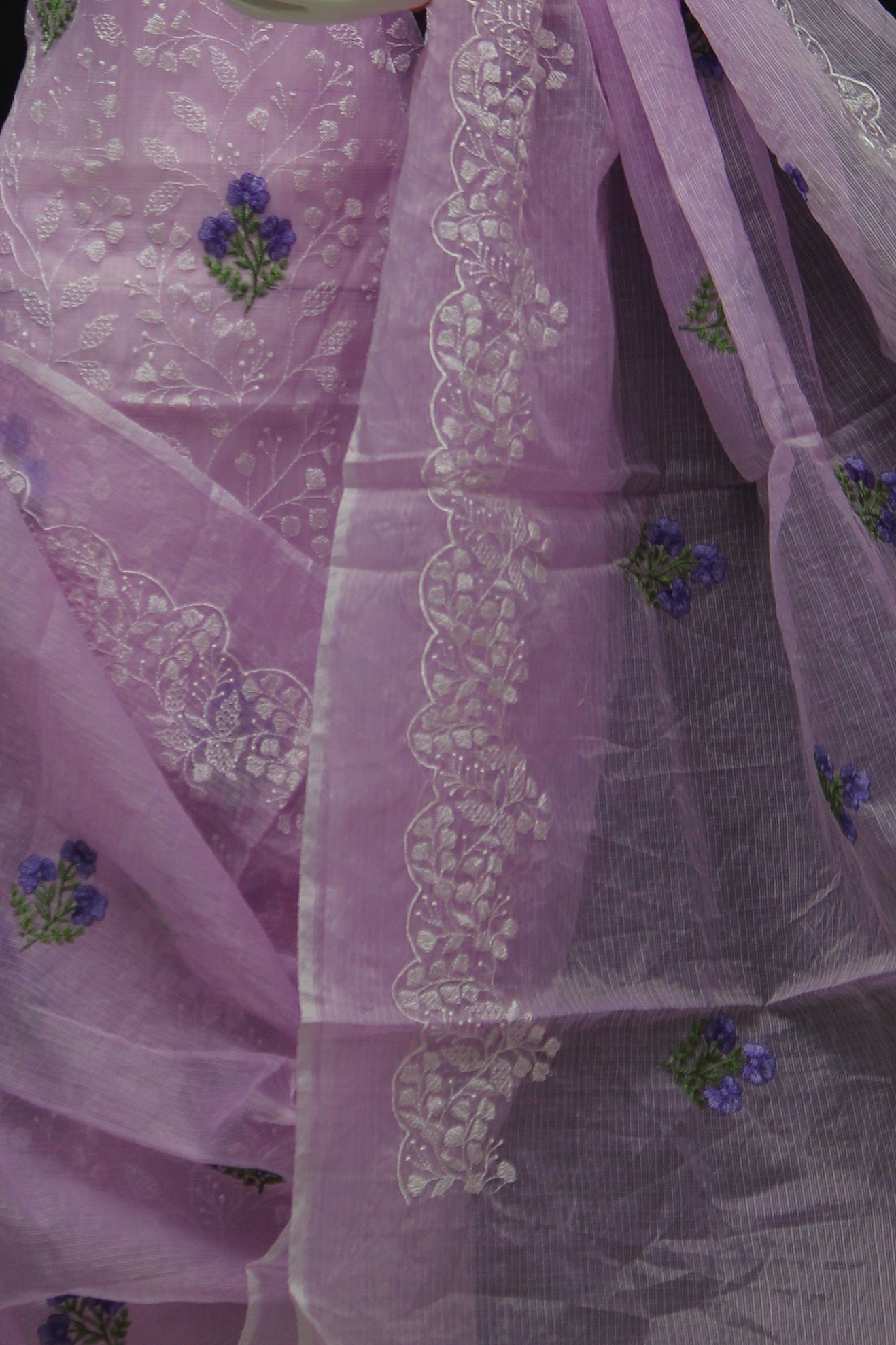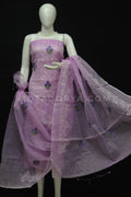 Purple Kota Doria Cotton Embroidery Work Dress Material With Bottom