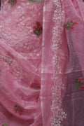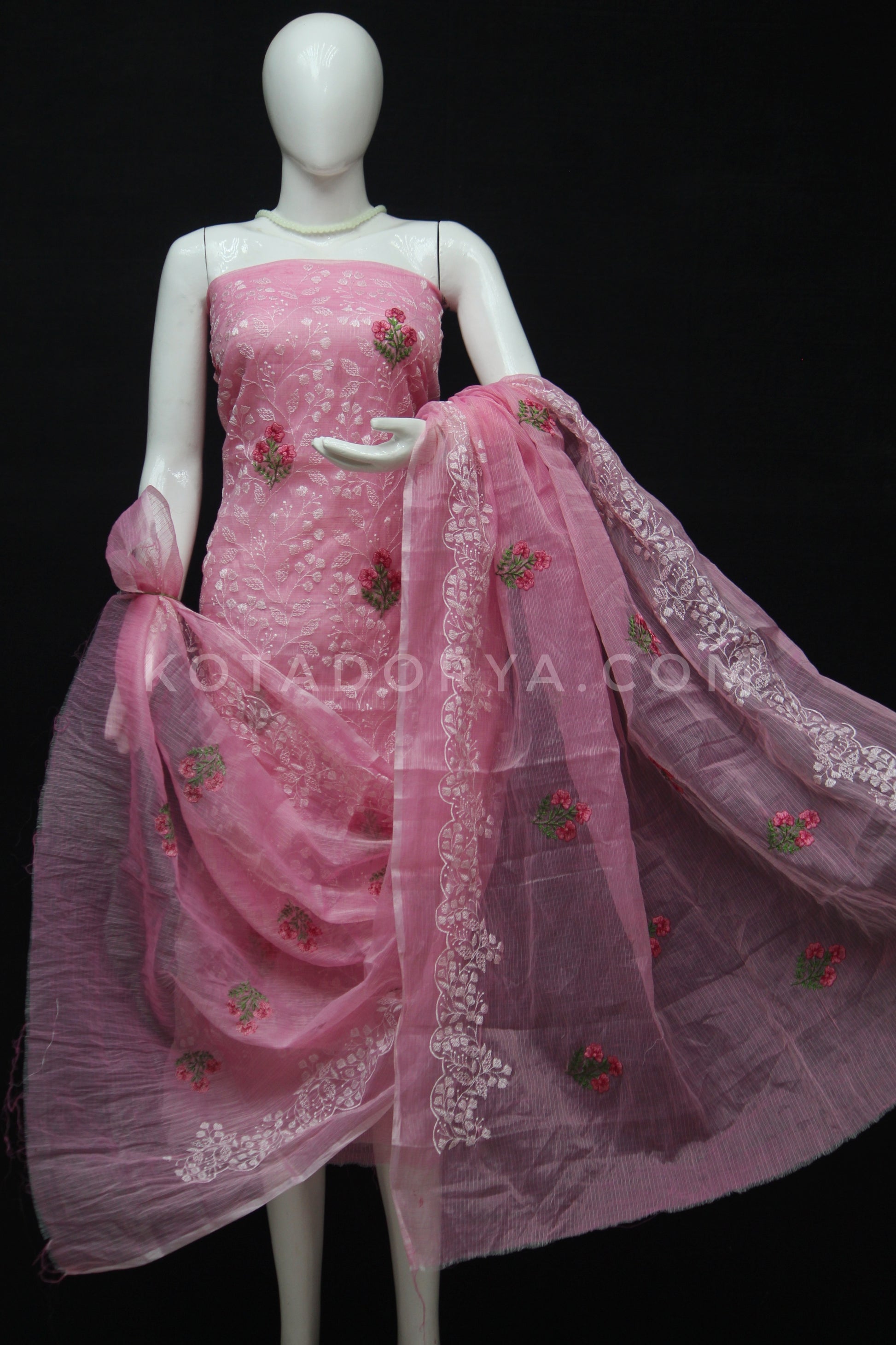 Pink Kota Doria Cotton Embroidery Work Dress Material With Bottom